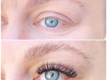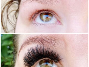 Volume lashes are made of handcrafted fans of fine lash extensions. They give a full and fluffy look.